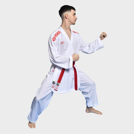 Predstavljamo Vam novi model KO kimona za kate KATA PROFESSIONAL WKF Approved! Model je urađen specijalno za kate, sa širokim porubom na rukavima i nogavicama koji su skraćeni po standardima. Materijal je izrađen od najkvalitetnijeg pamuka dugog vlakna, gde su prilikom izrade korišćene potpuno nove tehnologije. Proizvodi odličan zvučni efekat prilikom pokreta. Težina materijala je 350 gr – 13oz. Ovaj model dolazi bez veza na ramenima.